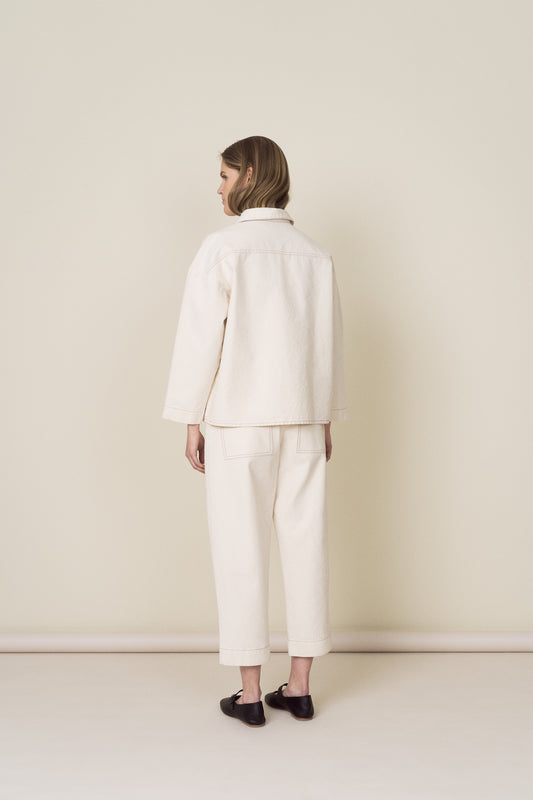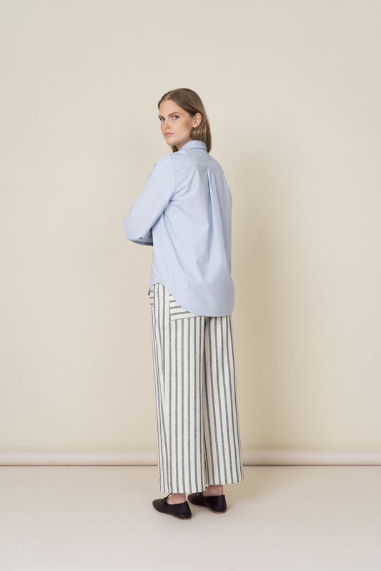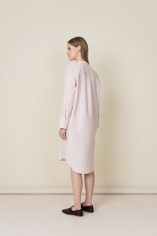 COLLARLESS OXFORD COTTON SHIRT DRESS