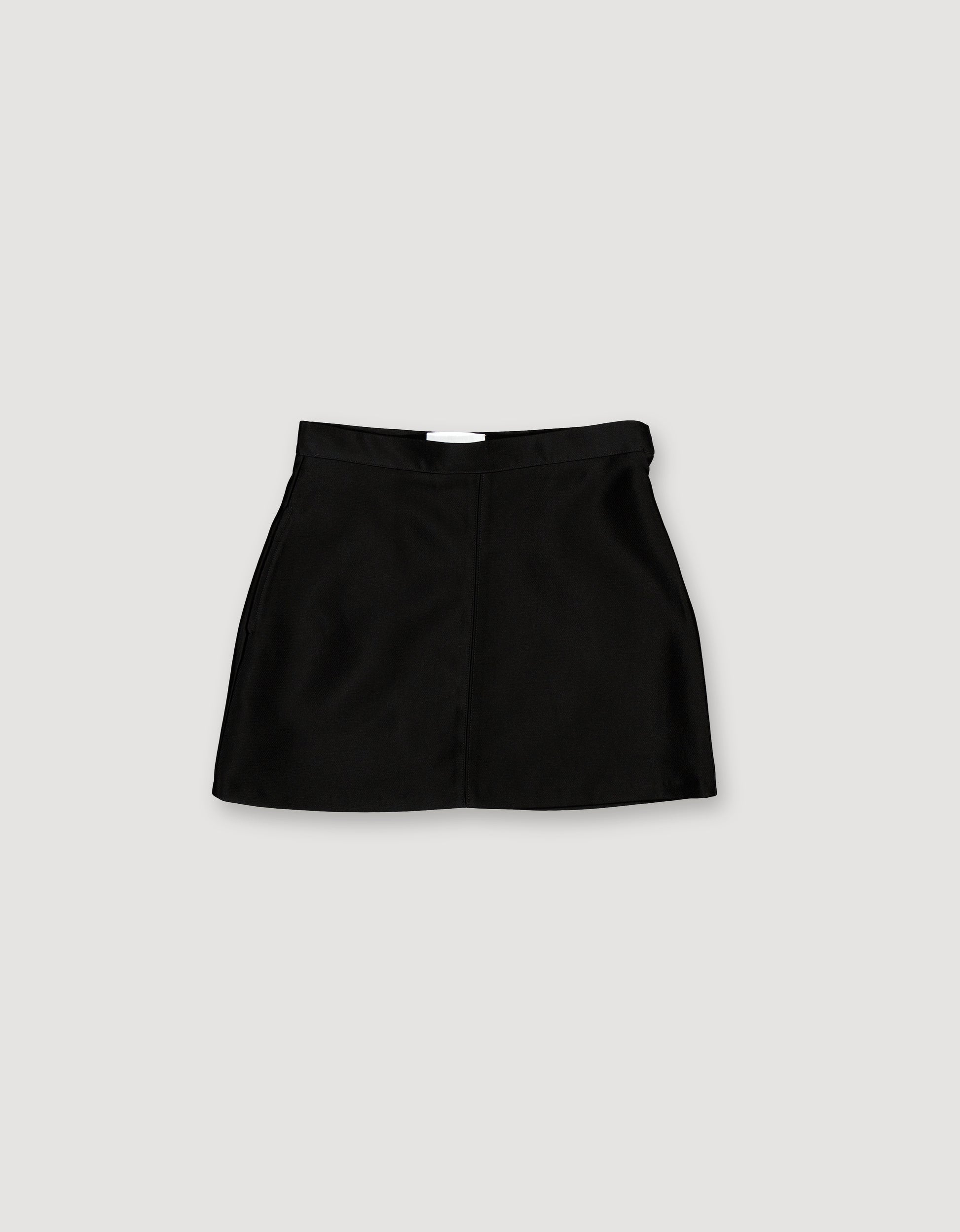 The timeless black mini skirt is made from luxurious, heavy weight silk blend fabric from the LVMH Group deadstock depot. The skirt is constructed from panels and features double stitch detailing. A sideseam pocket, zipper fastening with a hidden button.
